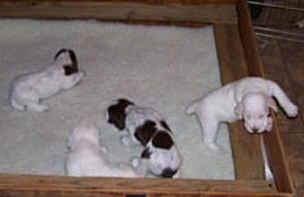 Be sure to come visit us often and watch as these Spinone Italiano puppies grow and develop. They've quickly gone from the quiet stage to rowdy, active youngsters. We're just not sure what they'll be into next.