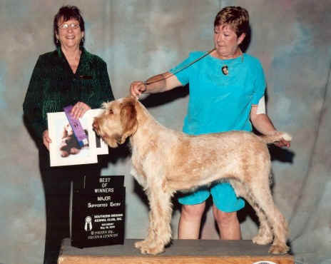 Edie made her show debut at the Kentuckiana Cluster when she was 7 months old and what a debut it was. At her first show she went Best of Breed, earning a 5 point major! Wow, what a start! And she didn't slow down, finishing her championship easily.