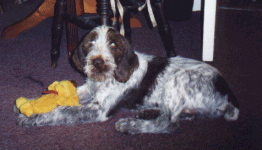 Appolo extends a welcome to our latest newcomer, Goldfly Scaramuccia. Mickey made his debut into the world on a Friday the Thirteenth. He also was bred by Sonia Grief in England.